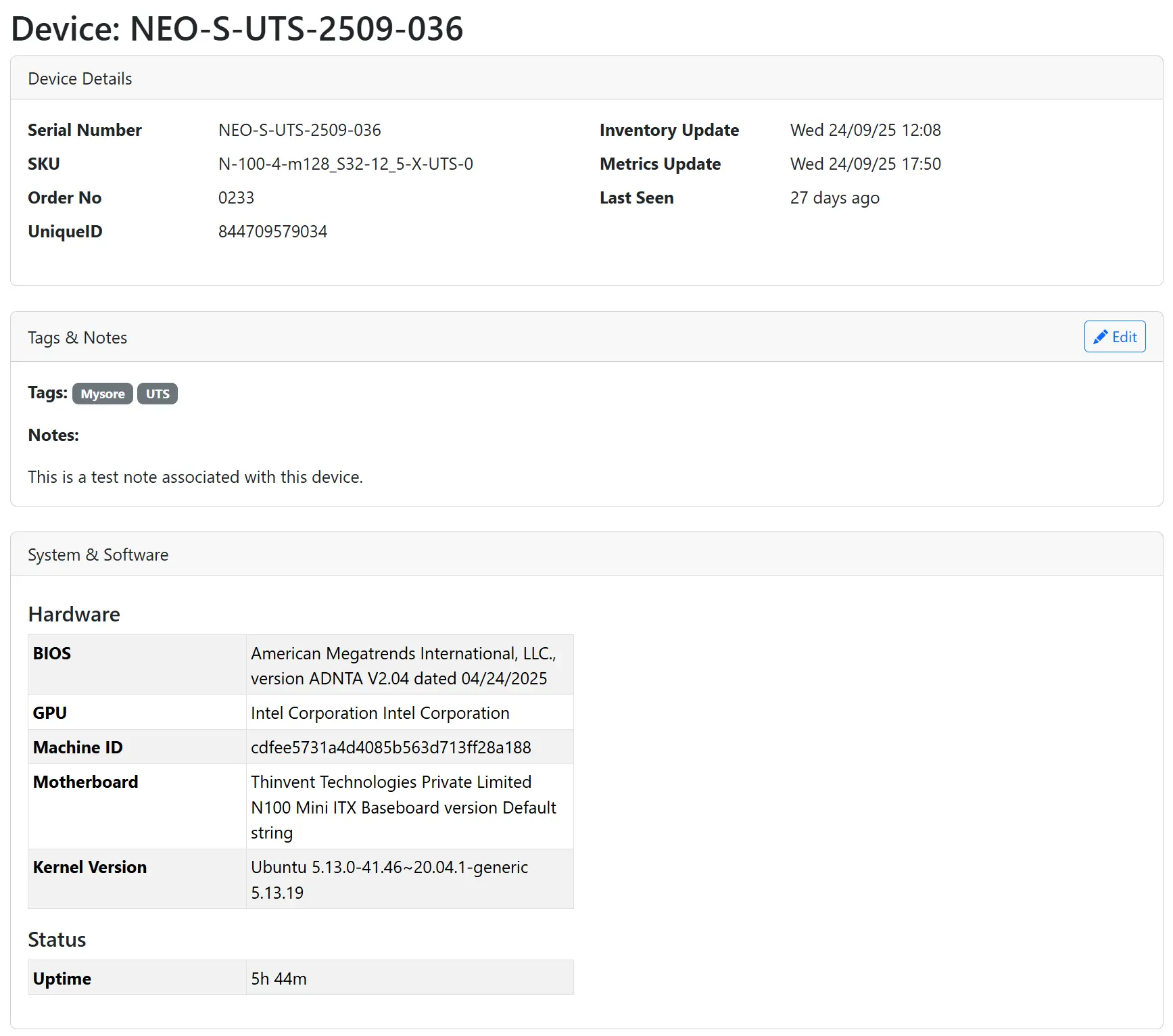 - Device Organisation: Use custom tags and notes to organise your devices in a way that makes sense for your business. Group devices by location, function, or any other criteria using custom sets.