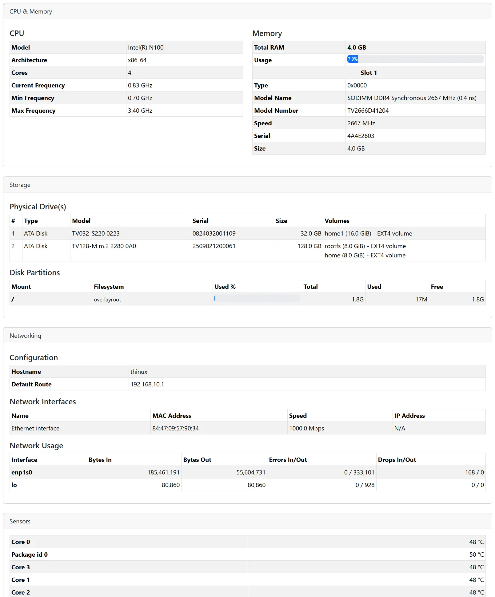 - Live Status: See device uptime, CPU and memory usage, disk space, and network traffic at a glance.