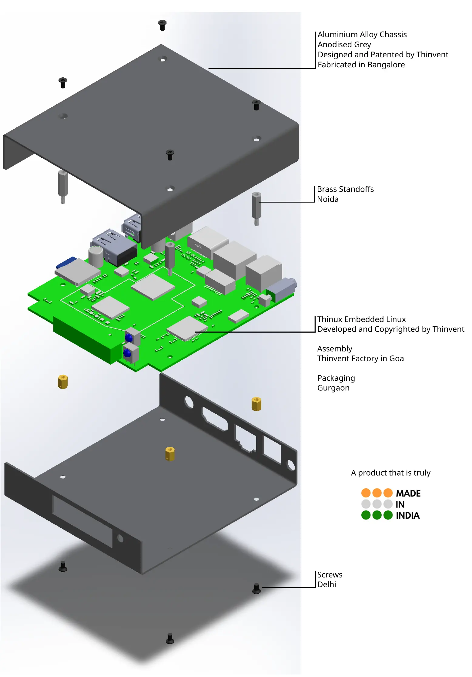 Thinvent® ARM® Cortex A55 processor (4 core, up to 1.9 GHz, 1 MB cache) based Mainboard - Thinvent