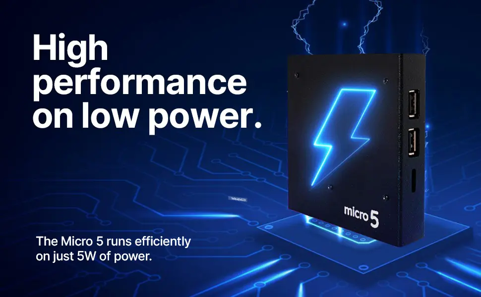 - Maximum power consumption of just 5 Watts